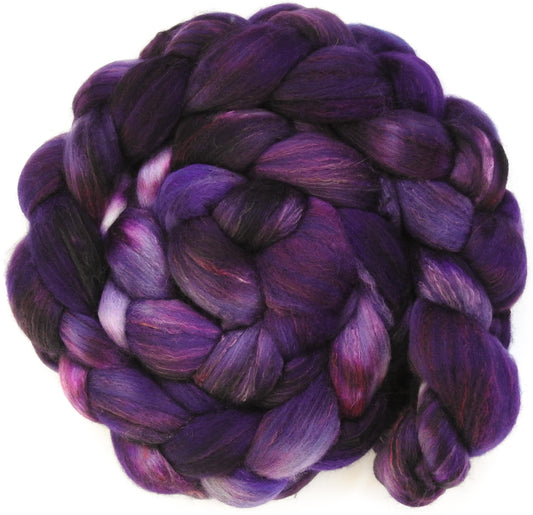 Queen of the Night (5.3 oz) -Glazed Solid- Batt in a Braid #53- YAK/ Tussah silk/ Superfine Merino/Gold Stellina(30/30/30/10)