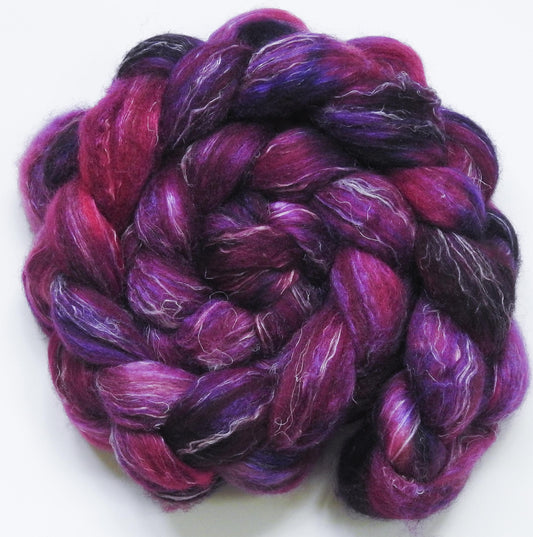 Cherry Blossoms @ Night - Batt in a Braid #54- Bleached YAK/Polwarth / Mulberry Silk (40/40/20)