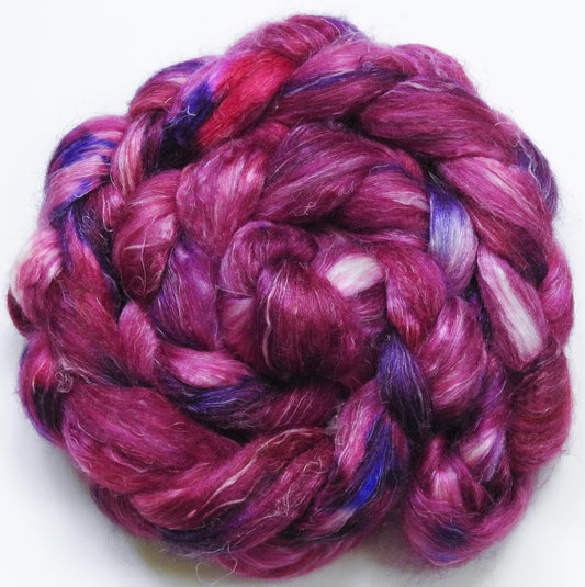 Cherry Blossoms @ Night (5.5 oz) -Batt in a Braid #32- Manx Loaghtan/ Wht Bfl / Tussah Silk/ Flax( 30/30/30/10)