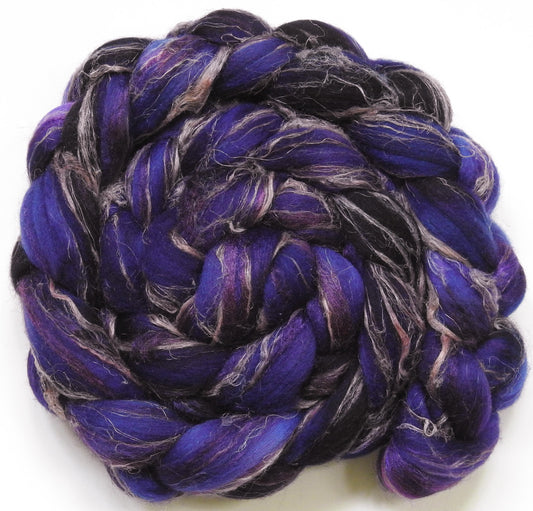 Queen of the Night -Glazed Solid- Batt in a Braid #53- YAK/ Tussah silk/ Superfine Merino/Gold Stellina(30/30/30/10)
