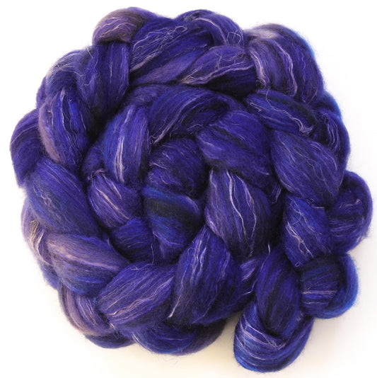 Grape Hyacinth (5.7 oz)- Batt in a Braid #32 - Manx Loaghtan/ Wht Bfl / Tussah Silk/ Flax( 30/30/30/10)
