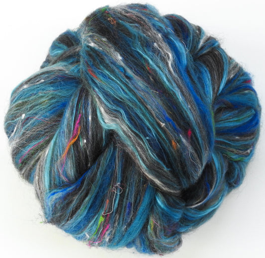 Batt in a Braid #31- Byzantium -(5.6 oz. ) Polwarth/ Mulberry Silk / Baby Alpaca / Rainbow Firestar/ Tencel( 40/25/15/10/10)