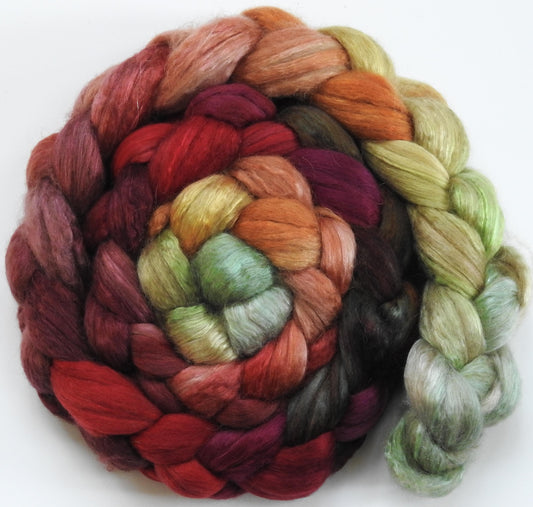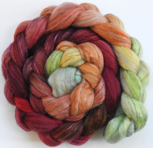 Icelandic Poppies - Batt in a Braid #31 - Polwarth/ Mulberry Silk / Baby Alpaca / Rainbow Firestar/ Tencel( 40/25/15/10/10)