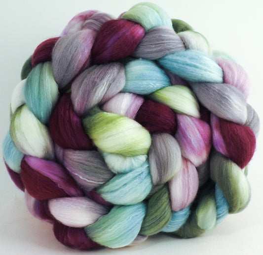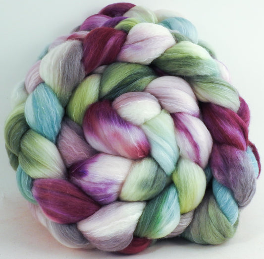 Lady Slipper (5.6 oz) - Batt in a Braid #31 - Polwarth/ Mulberry Silk / Baby Alpaca / Rainbow Firestar/ Tencel( 40/25/15/10/10)