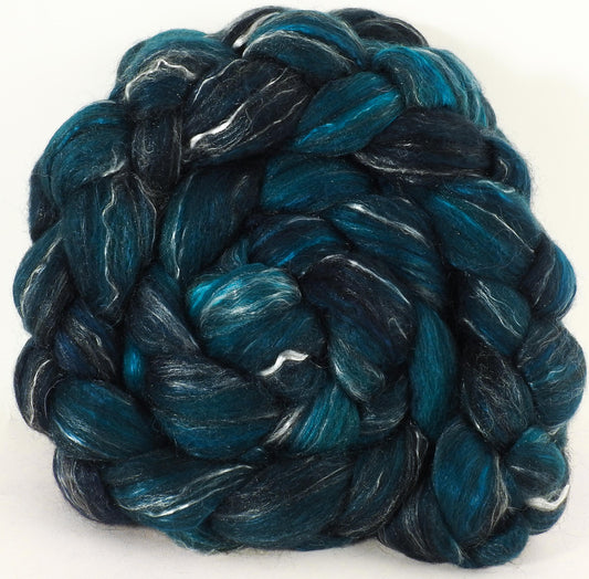 Blue Spruce (5.8 oz) - Batt in a Braid #31 - Polwarth/ Mulberry Silk / Baby Alpaca / Rainbow Firestar/ Tencel( 40/25/15/10/10)