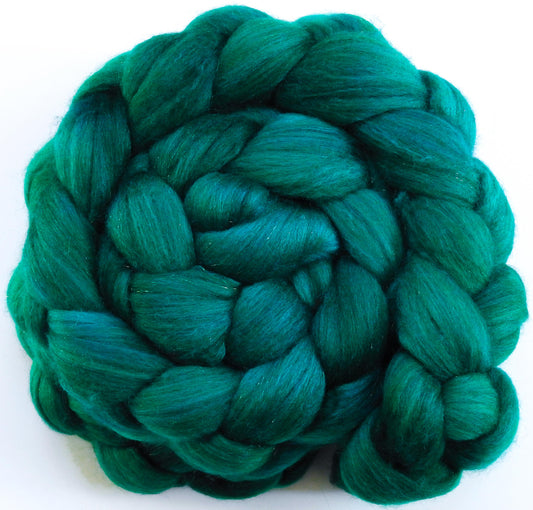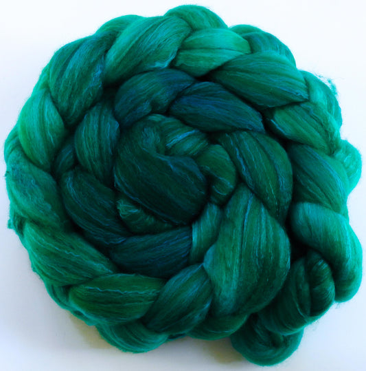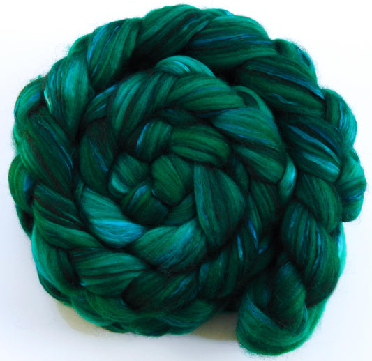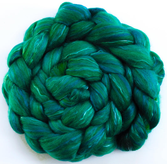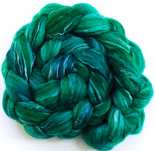 Shamrock (5.8 oz) - Batt in a Braid #31 - Polwarth/ Mulberry Silk / Baby Alpaca / Rainbow Firestar/ Tencel( 40/25/15/10/10)