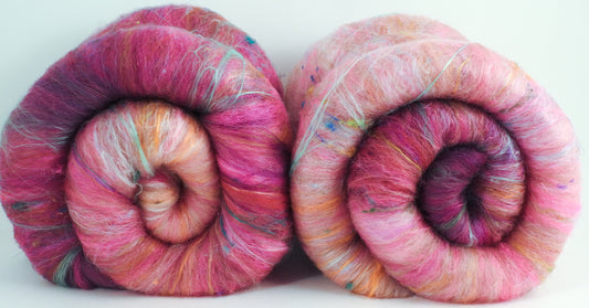 Pink Horizon (3.6 oz) - Roly-Poly Batts- 30% Bond Fleece, Superfine merino, Polwarth, silk, bamboo, silk noil, angelina