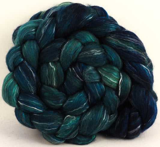 Maelstrom (6 oz) - Batt in a Braid #31 - Polwarth/ Mulberry Silk / Baby Alpaca / Rainbow Firestar/ Tencel( 40/25/15/10/10)