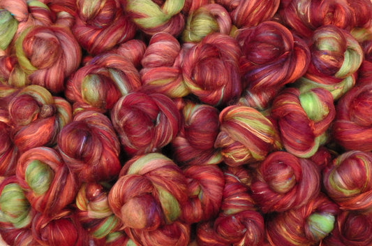 Beach Roses (3.8 oz.)- Roly-Poly Batts- 30% Nash Island fleece, merino, silk, polwarth, bamboo, silk noil, angelina