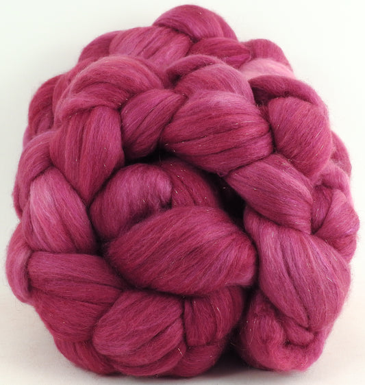 Dragon Fruit - Batt in a Braid #48 -Superfine Merino/ Mulberry silk/ Camel/ Gold Stellina (55/25/15/5)