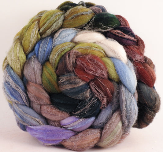 Batt in a Braid #32 - Tree Frog -(5.5 oz) Manx Loaghtan/ Wht Bfl / Tussah Silk/ Flax( 30/30/30/10)