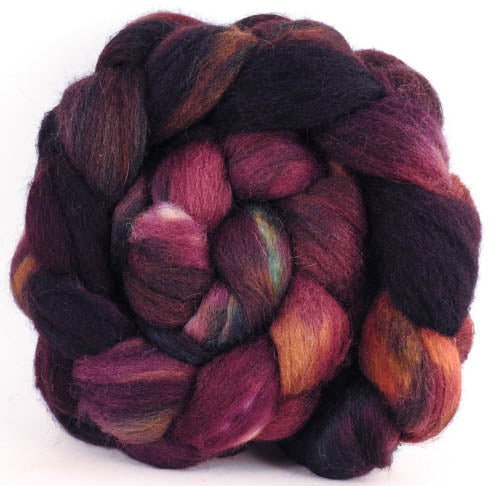Hand-dyed wensleydale/ mulberry silk roving (65/35) - Squirrel's Pantry - (5.5 oz.)