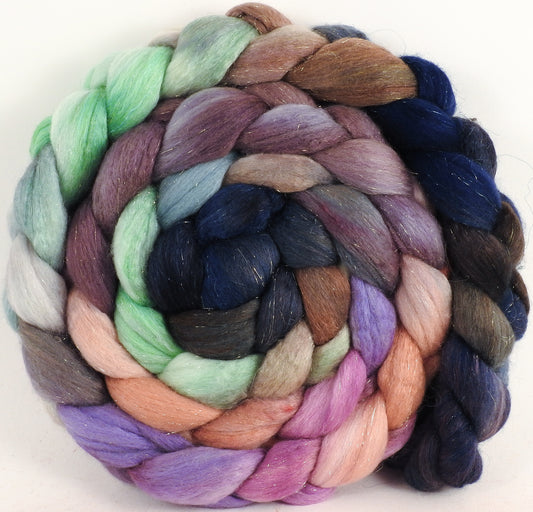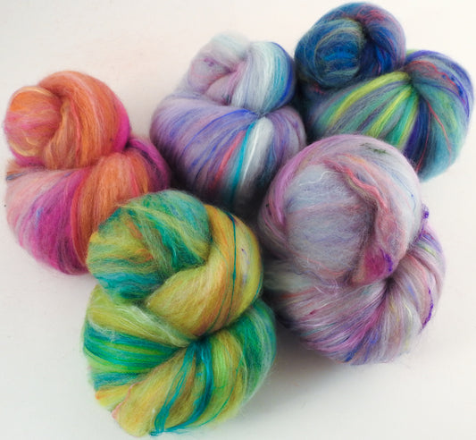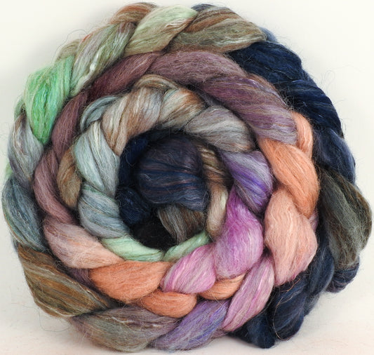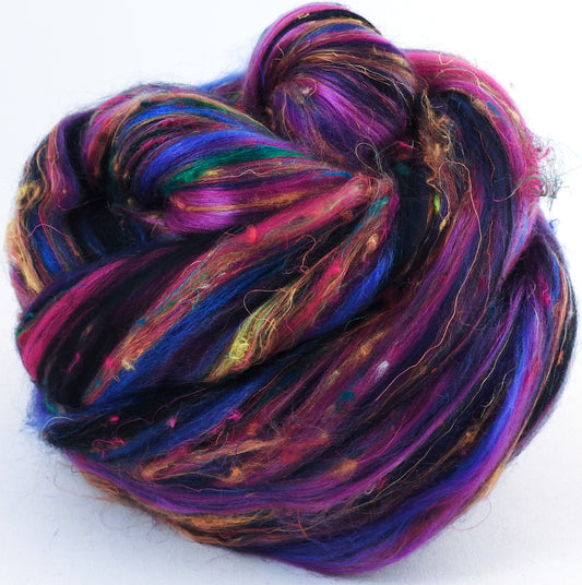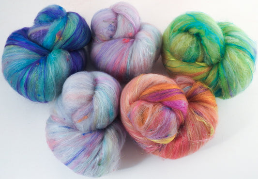 Batt in a Braid #31- Elven Cloak -(5.3 oz. ) Polwarth/ Mulberry Silk / Baby Alpaca / Rainbow Firestar/ Tencel( 40/25/15/10/10)