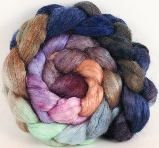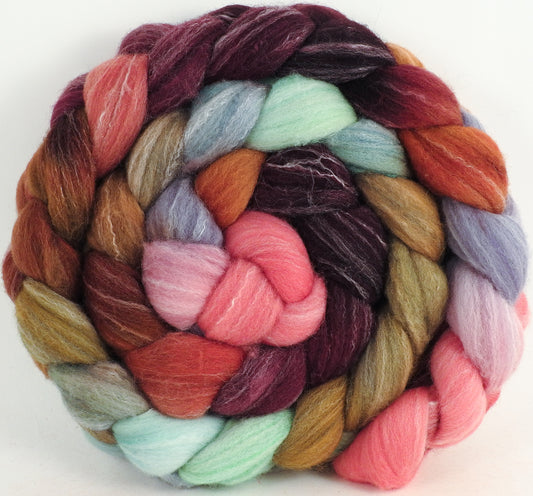 Hand-dyed wensleydale/ mulberry silk roving ( 65/35) -Kelim- ( 5.9 oz.)