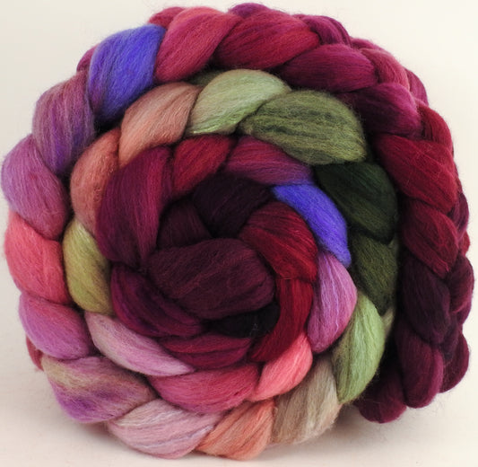 Hand dyed top for spinning -Sweetheart Roses- (5.4 oz.) Organic polwarth /Tussah silk (80/20)