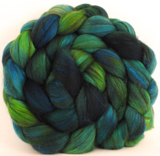 Hand dyed top for spinning -Sleigh Ride (5.5 oz.) Targhee/silk/ bamboo ( 80/10/10)