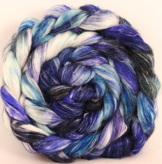 Hand dyed top for spinning -Blue Jay- (5.5 oz.) 18.5 mic merino/ camel/ brown alpaca/ mulberry silk/ (40/20/20/20)