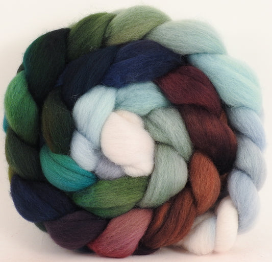 Hand dyed top for spinning -Sleigh Ride -(5.35 oz.) Organic polwarth