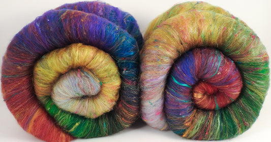 Batt in a Braid #31-Sleigh Ride -( 5.3 oz. ) - Polwarth/ Mulberry Silk / Baby Alpaca / Rainbow Firestar/ Tencel( 40/25/15/10/10)