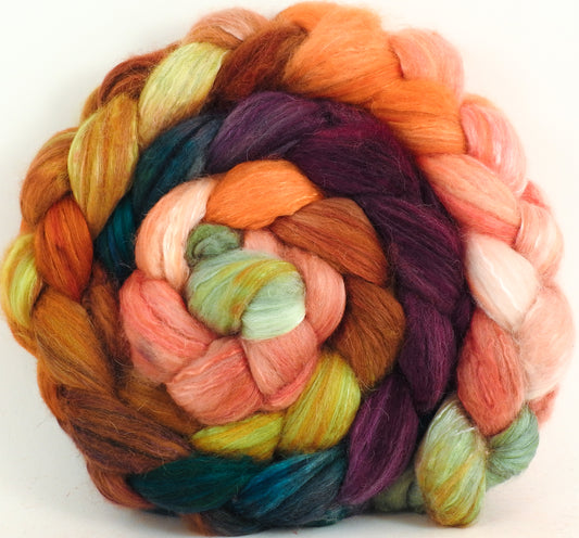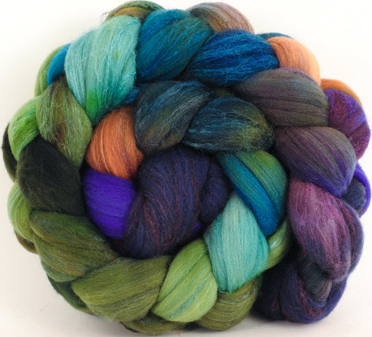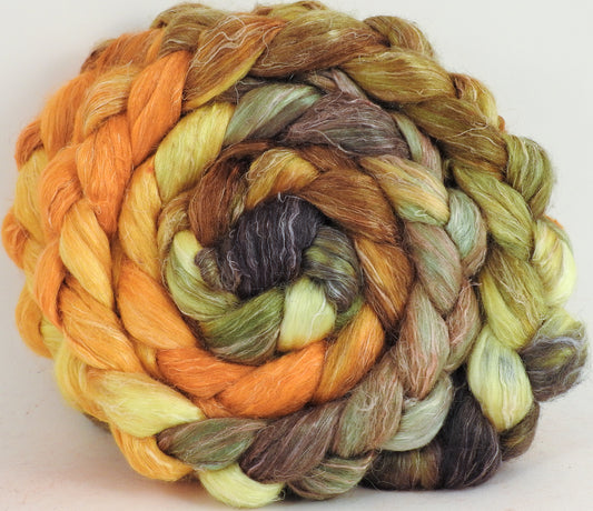 Hand dyed Tussah Silk / flax roving - Leprechaun - (65/35) - (5.3 oz.)