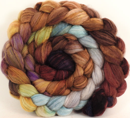 Hand-dyed wensleydale/ mulberry silk roving (65/35) - Tarnished (6.3 oz)