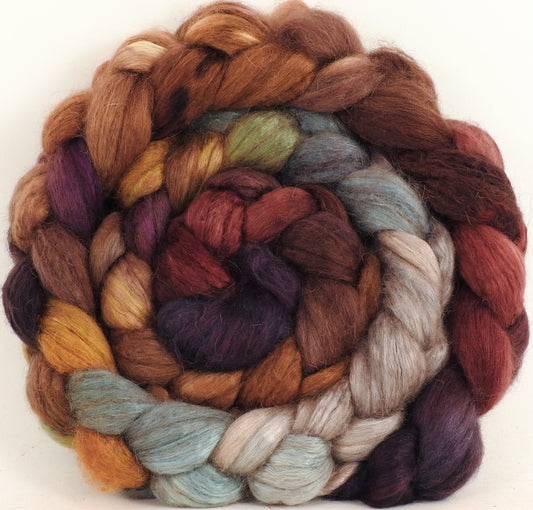 Hand dyed top for spinning - Tarnished (6.6 oz) - 18.5 mic merino/ camel/ brown alpaca/ mulberry silk/ (40/20/20/20)