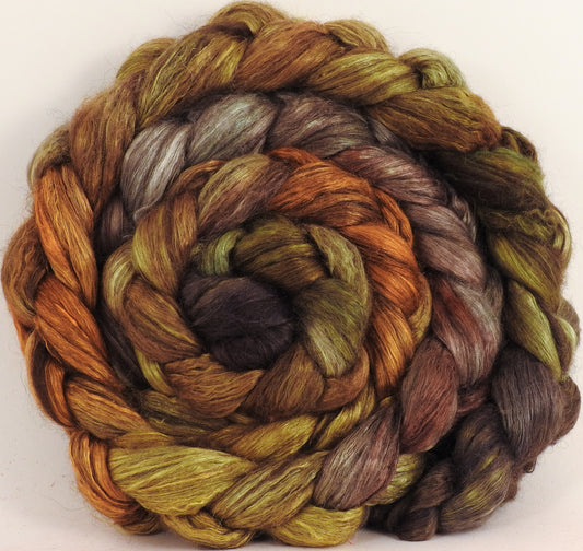 Hand dyed Tussah Silk / flax roving - Tarnished - (65/35)