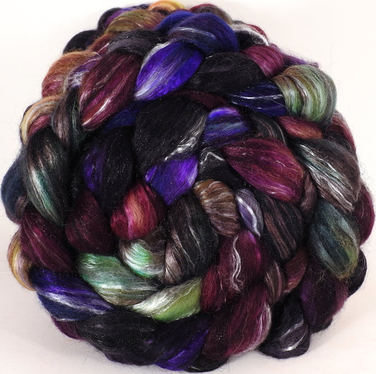 Batt in a Braid #31- Nuummite - (5.4 oz. ) Polwarth/ Mulberry Silk / Baby Alpaca / Rainbow Firestar/ Tencel( 40/25/15/10/10)