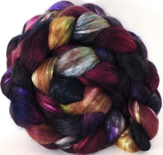 Batt in a Braid #31- Squirrel's Pantry-( 6.2 oz. ) - Polwarth/ Mulberry Silk / Baby Alpaca / Rainbow Firestar/ Tencel( 40/25/15/10/10)