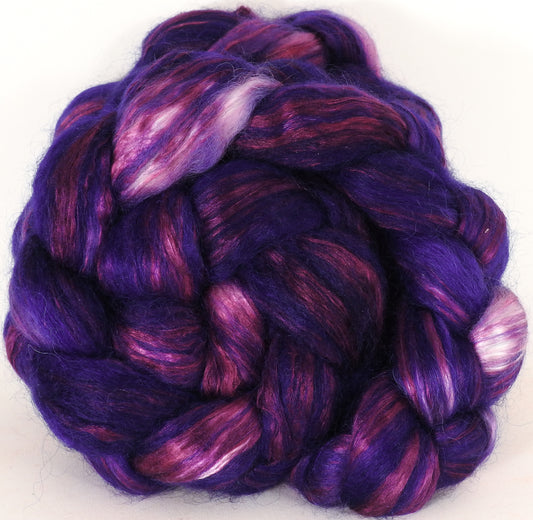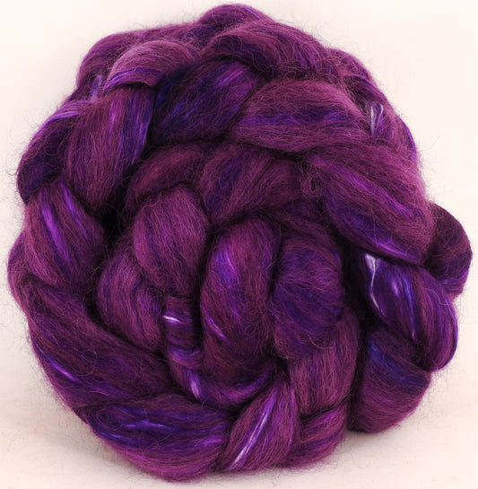 Hand-dyed Wensleydale/ Mulberry silk roving (65/35) - Damson Plum - (6.4 oz.)