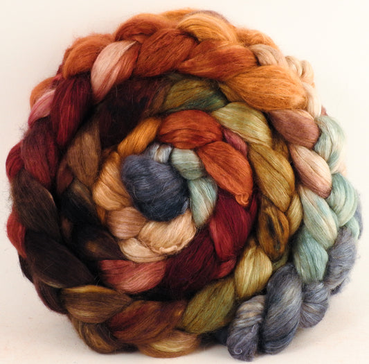 Hand dyed top for spinning - Squirrel's Pantry - (5.8 oz) Organic Polwarth / Tussah silk (80/20)