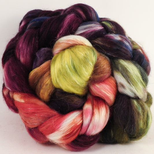 Batt in a Braid #46 - Coleus - (5.7 oz) - Rambouillet/ Corriedale / Ramie/Sari Silk (25/25/25/25)