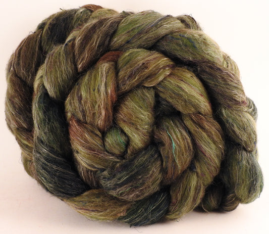 Batt in a Braid #46 -Yerba Mate - (5.6 oz) - Rambouillet/ Corriedale / Ramie/Sari Silk (25/25/25/25)