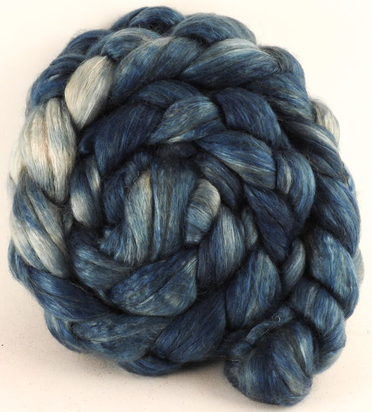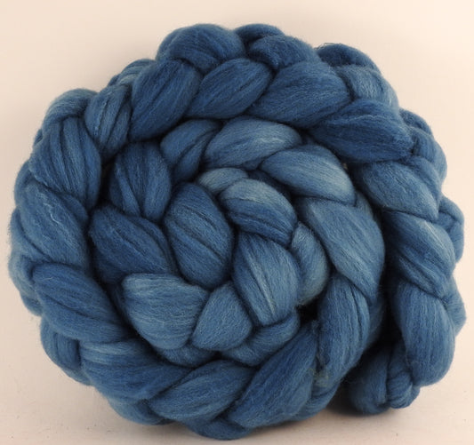 Hand dyed top for spinning - Indigo - Organic Polwarth / Tussah silk (80/20)