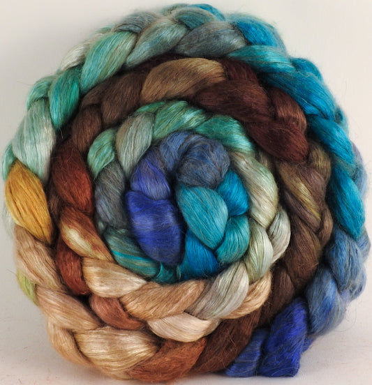 Hand dyed Tussah Silk / flax roving - Barefoot - (65/35)- (4.8 oz.)