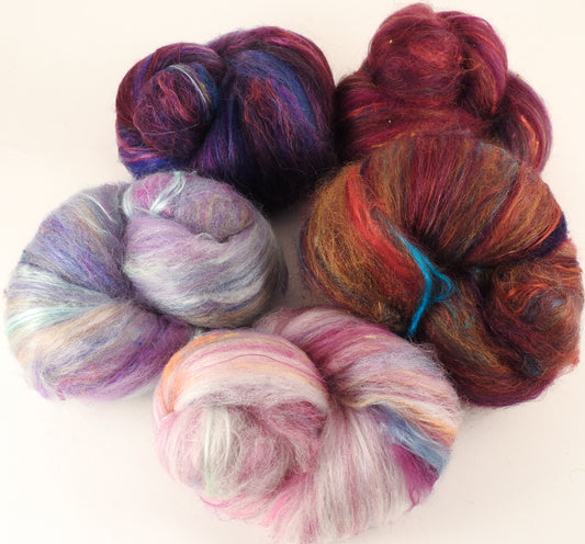 Luna Moth - Roly-Poly Batts- 30% Bond Fleece, Superfine merino, Organic Polwarth, silk, bamboo, silk noil, angelina