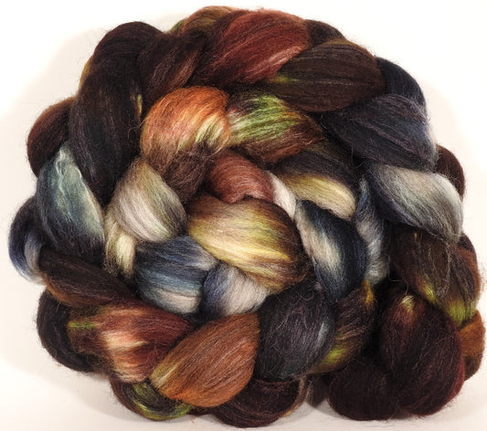 Batt in a Braid #39- SARI-#5 dark -(4.6 oz.) Falkland Merino/ Mulberry Silk / Sari Silk (50/25/25)