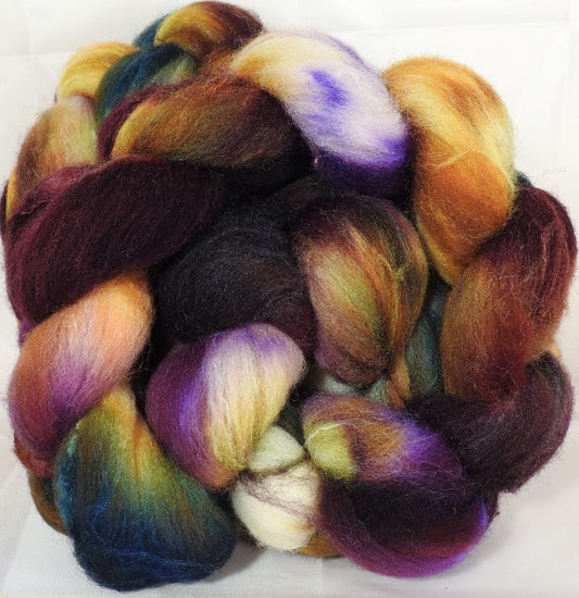 Hand dyed top for spinning - Beauty and the Beast - (5.2 oz.) Targhee/silk/ bamboo ( 80/10/10)
