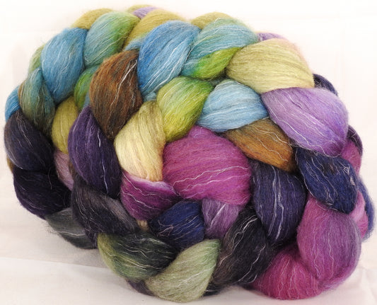 Batt in a Braid #31- Brocade-( 6.2 oz. ) - Polwarth/ Mulberry Silk / Baby Alpaca / Rainbow Firestar/ Tencel( 40/25/15/10/10)