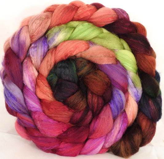 Hand-dyed wensleydale/ mulberry silk roving ( 65/35) -Brocade - ( 6.3 oz.)