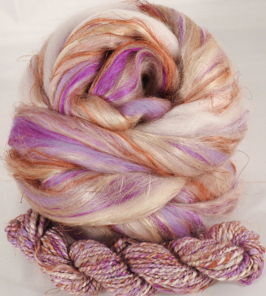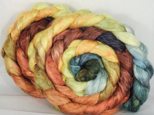 Batt in a Braid #31- Gourds -( 5.1 oz. ) - Polwarth/ Mulberry Silk / Baby Alpaca / Rainbow Firestar/ Tencel( 40/25/15/10/10)