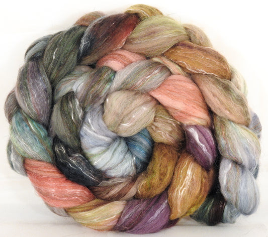 Tussah Silk / flax roving (65/35)- Pebble Mosaic - 5 oz.