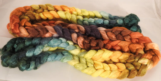 Batt in a Braid #35 - Gourds (5.4 oz.) - Sw Merino (18.5 mic) /Merino (18.5 mic) / Tussah Silk (40/40/20)