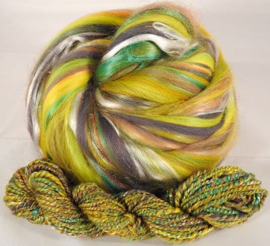 Batt in a Braid #36 - Mossy - (6.2 oz.) Sw BFL / BFL / tussah Silk ( 40/40/20 )
