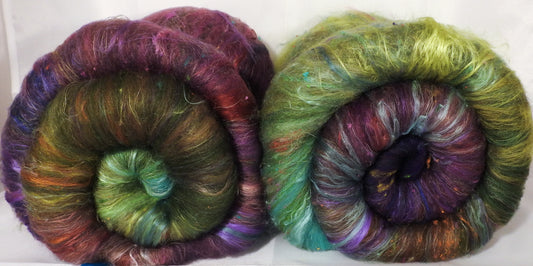 Batt in a Braid #35 -Gnomes- (6 oz.)Sw Merino (18.5 mic) /Merino (18.5 mic) /tussah Silk ( 40/40/20 )