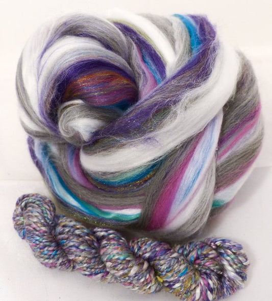 Batt in a Braid #7 -Jazzberry-(6.1 oz.)Polwarth/ Manx / Mulberry silk/ Firestar (30/30/30/10)