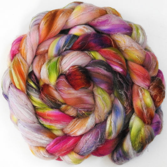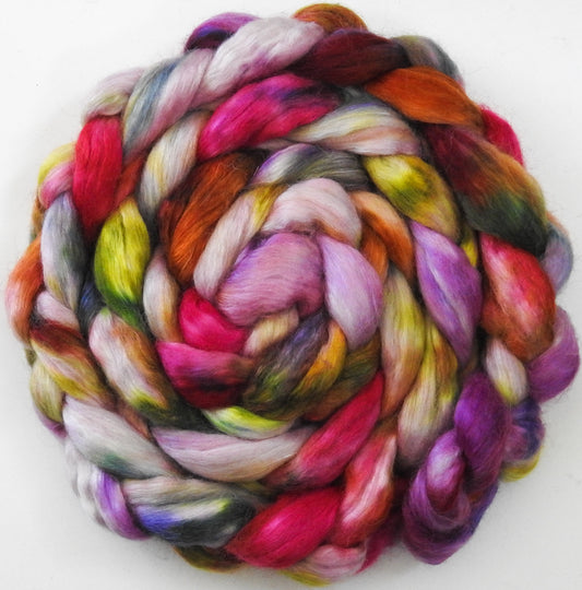 Primavera (5.6 oz) - Batt in a Braid #52- Wensleydale/ Mulberry silk/ Polwarth (60/25/15)
