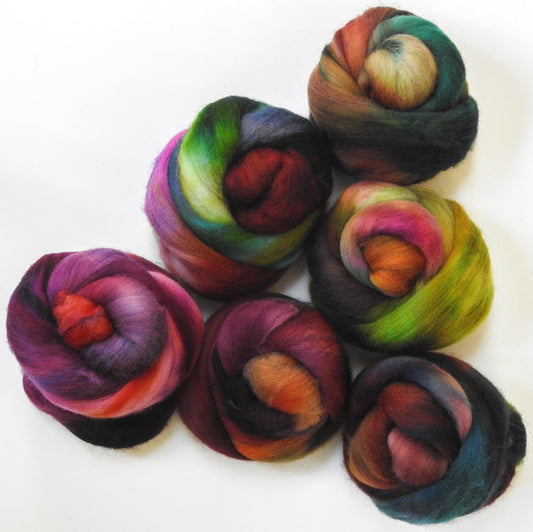 Questing Beast (5.7 oz) - Batt in a Braid #65 - Rambouillet/ Cormo / Sari silk/ Tussah silk (40/25/25/10)