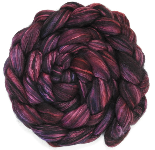 Malbec (5.6 oz) - Batt in a Braid #65 - Rambouillet/ Cormo / Sari silk/ Tussah silk (40/25/25/10)