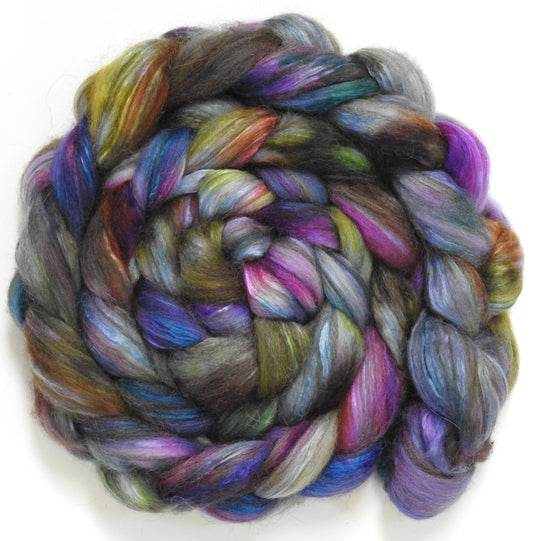 Mary, Mary Quite Contrary (5.6 oz) - Batt in a Braid #65 - Rambouillet/ Cormo / Sari silk/ Tussah silk (40/25/25/10)